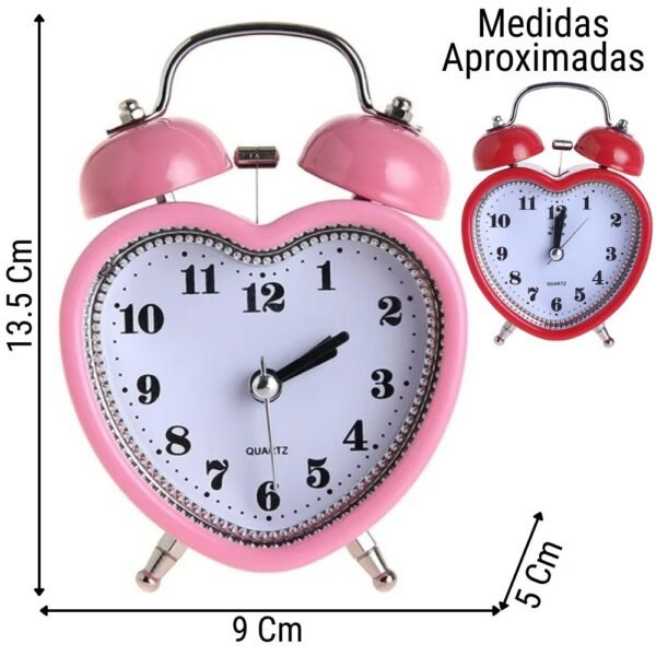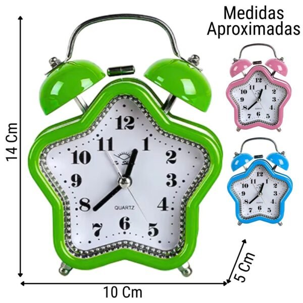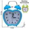 Recupera el encanto de lo clásico con este Reloj Despertador de Doble Campana. Su sistema de martillo golpeando las campanas metálicas garantiza un sonido lo suficientemente fuerte para despertar a los sueños más pesados. Disponible en una divertida gama de formas (corazón, manzana, estrella, cuadrado) y colores vibrantes.