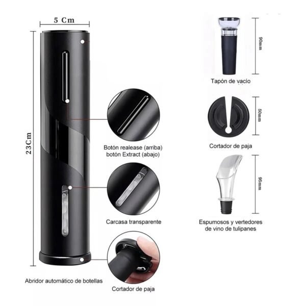 – Funcionamiento Automático y Rápido: Extrae el corcho con solo presionar un botón.