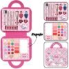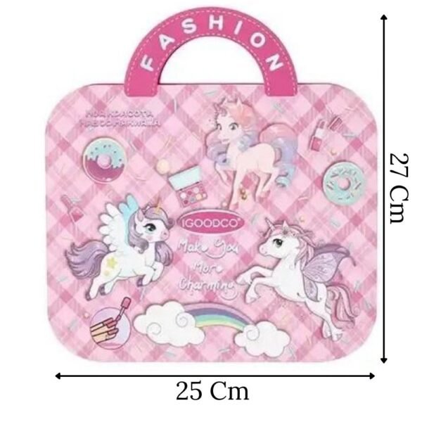 – Bandejas mostrando una increíble variedad de sombras,labiales y un set para decorar sus uñas. Es perfecto para tardes de juego con amigas, fiestas de pijamas o simplemente para divertirse en casa.