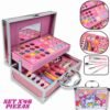 – Bandejas organizadoras que se elevan mostrando una increíble variedad de sombras, brillos labiales y un set completo para decorar sus uñas. Es perfecto para tardes de juego con amigas, fiestas de pijamas o simplemente para divertirse en casa.