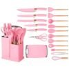 Set X19 Utensilios Cuchillos Para Cocina Con Tabla Para Picar Rosado