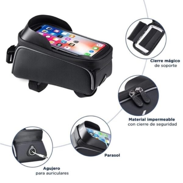 ¡Lleva tu celular y objetos de valor totalmente protegidos en cada rodada! Ya sea para rutas urbanas o senderos de montaña, este estuche frontal para el marco de tu bicicleta es el compañero perfecto. Está diseñado para mantener tu teléfono seguro, visible y 100% operativo mientras pedaleas, además de brindarte un práctico espacio de almacenamiento extra.