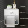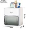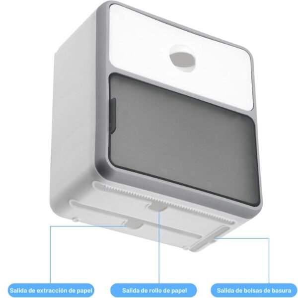 – Dispensador: El compartimento principal protege el rollo de papel higiénico contra salpicaduras de agua y humedad, garantizando que el papel se mantenga siempre seco e higiénico. Cuenta con una ventana semitransparente que te permite ver cuánto papel queda sin necesidad de abrirlo.