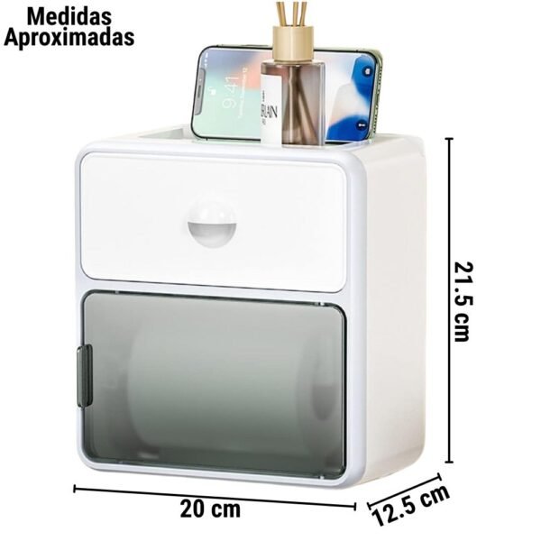 Transforma y organiza tu baño con este dispensador inteligente de diseño moderno. No es solo un portarrollos; es una solución completa de almacenamiento 3 en 1 que protege tus artículos de la humedad y mantiene tu espacio ordenado.