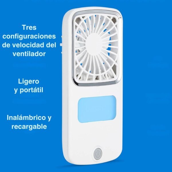 – Recargable: Olvídate de las pilas. Con su batería de larga duración, simplemente conéctalo a tu computador, power bank, o cargador de pared y tendrás horas de frescura garantizada.