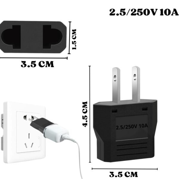 Portada » Productos » ADAPTADORES » Adaptador Corriente Redondo A Plano Europeo Negro
