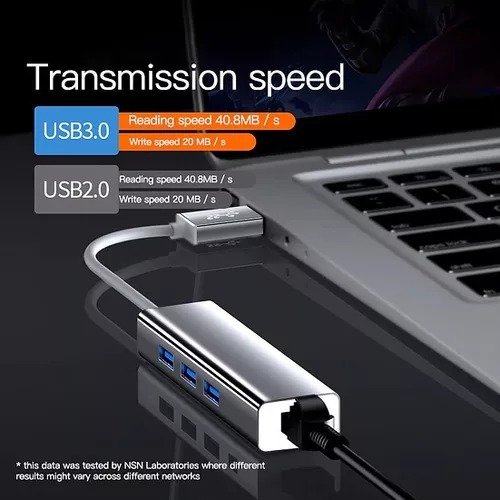 -Multiusos, transferencia de archivos en segundos. Adaptador de cable de red + 3USB