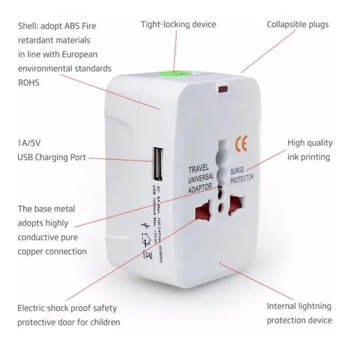 -Adaptador de corriente universal para viajes 10A + 2 Puerto USB de 1A.