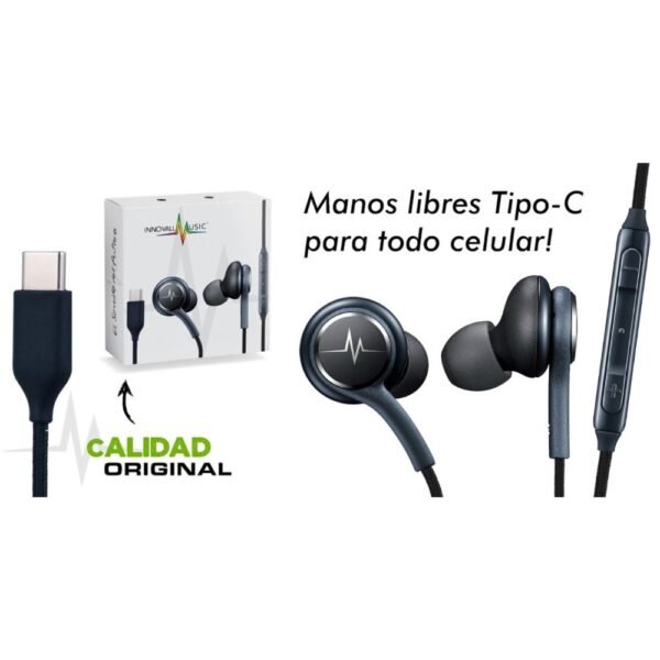 Manos libres con micrófono incorporado, botón de respuesta y finalización de llamada. Tipo C.