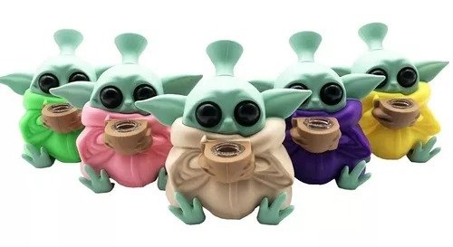 Mini Bong Baby Yoda de Silicón. Material: Silicón grado alimenticio