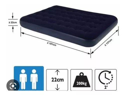 Con un largo de 191 cm, un ancho de 99 cm y una altura de 25 cm, esta cama de aire te ofrece una mayor comodidad a diferencia de otros colchones tradicionales para camping.