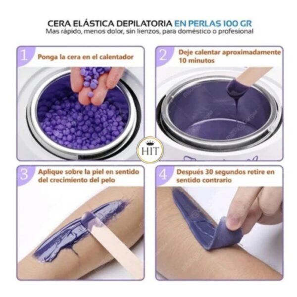 Temperatura de fusión: Se derrite a una temperatura ideal para una depilación cómoda y sin dolor.