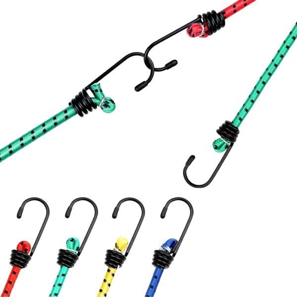 Estos tensores, también conocidos como pulpo o cuerdas elásticas, están equipados con ganchos en ambos extremos, permitiendo su fácil uso para diversas aplicaciones, tanto en el hogar como en el transporte, el camping o actividades al aire libre.