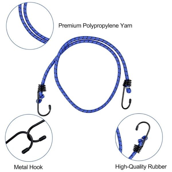 -Ganchos resistentes: Cada tensor está equipado con ganchos en sus extremos, fabricados con materiales de alta resistencia, capaces de sujetar con seguridad diversos objetos, como equipaje, carpas, cajas y más.