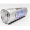 Parlante portable con botones que alumbran con leds al ritmo de la musica. Diseño plateado moderno, excelente calidad de sonido, recargable y reproduce archivos almecenados en usb, micro Sd y con cable de audio 3.5 mm.