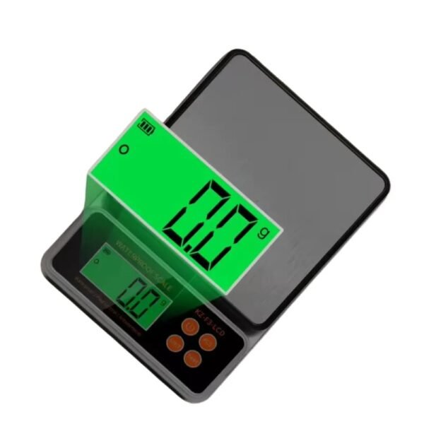 Pantalla LCD clara y fácil de leer: Muestra el peso en dígitos grandes y nítidos para una lectura precisa.