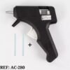 Herramienta de uso manual diseñada para aplicar adhesivo de silicona caliente de manera rápida y precisa, ideal para realizar trabajos de reparación, manualidades, bricolaje y proyectos de ensamblaje. Este dispositivo se calienta eléctricamente, lo que permite derretir barras de silicona, transformándolas en un adhesivo que se puede aplicar sobre diversas superficies, proporcionando una sujeción fuerte y duradera.