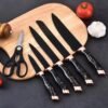 Set De Cuchillos X5 Con Tijera Para Cocina Y Soporte Para Almacenar Negro