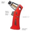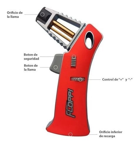 con tecnología de encendido, solo tienes que pulsar el botón para encender el fuego y controlar la intensidad de la llama con el control de «+» o «-«, cuando hayas finalizado de usar el soplete y la llama se apaga simplemente cierras el botón de seguridad y queda totalmente seguro para usarlo la próxima vez.