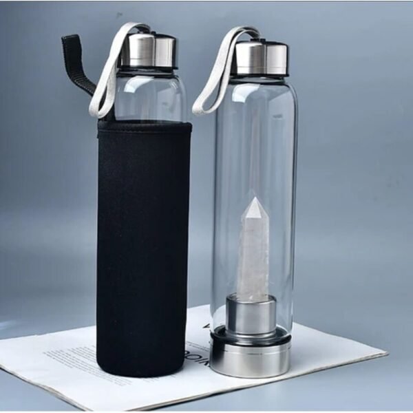 BOTELLA CON CUARZOS. TRANSFIERE TODA LA ENERGÍA PROPIA DE LOS CUARZOS AL AGUA CONVENCIONAL Y LA REVITALIZA CON LA CARGA ENERGÉTICA DE LAS PIEDRAS QUE ELIJAS, DESDE PROMOVER EL BIENESTAR Y LAS BUENAS VIBRAS, HASTA EL AMOR PROPIO, CARACTERÍSTICO DE LOS CUARZOS ROSAS