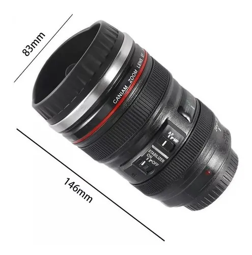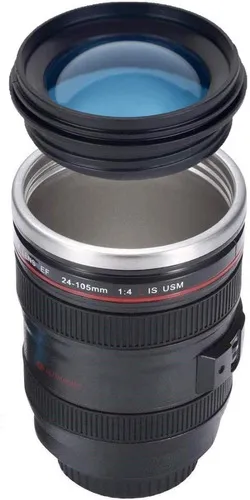 Termo de lente de cámara 24-105MM, de acero inoxidable con revestimiento negro (400ml)